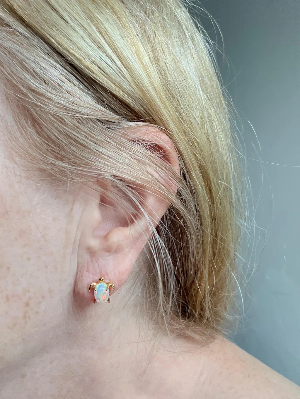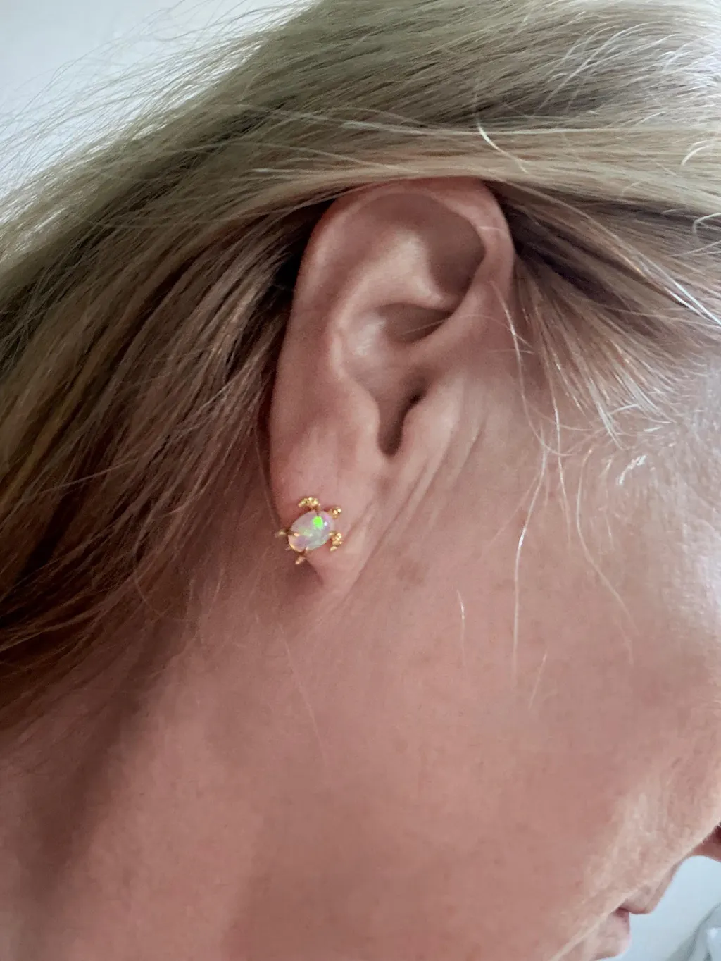Turtle Opal Gold Stud Earrings